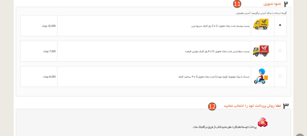 در ادامه شیوه ارسال سفارشتان را انتخاب کنید.