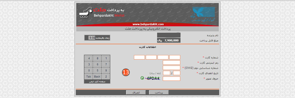 حال نوبت به کلیک روی دکمه پرداخت (درگاه بانک ملت) می باشد. امکان پرداخت هزینه کالا با تمام کارت های بانکی عضو شتاب فراهم است