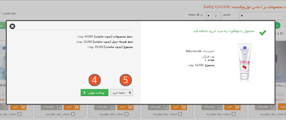اگر می خواهید محصولات بیشتری را خرید کنید ، روی دکمه (ادمه خرید) کلیک کنید.